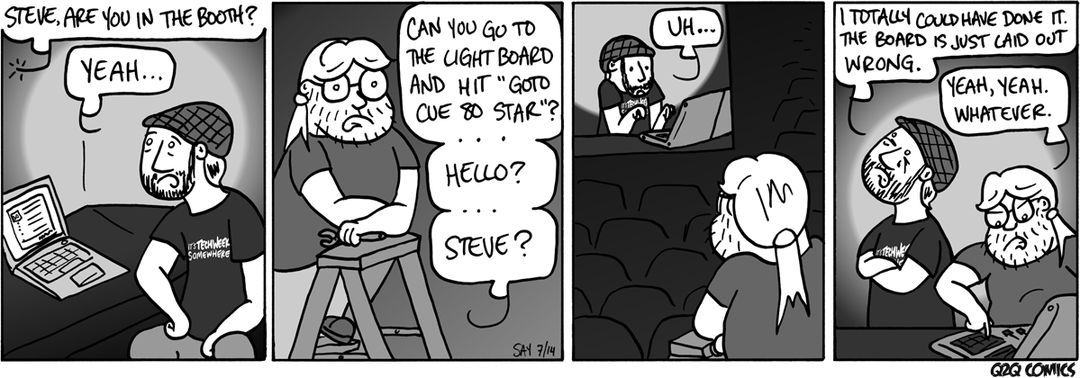Steve is at the light board and is horribly confused.